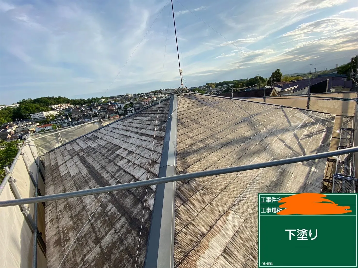 今回、町田市K様邸の屋根塗装で下塗り塗料2種類で合計3回の下塗りを行いました。